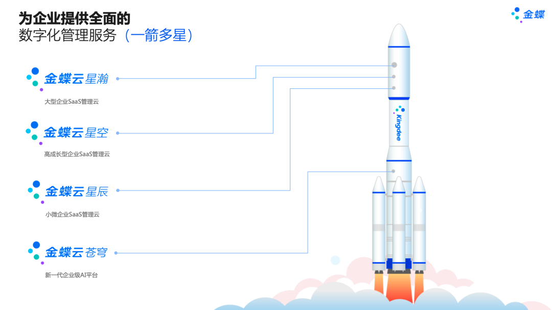 金蝶产品体系支撑企业的各类业务上云, 助力企业实现数字化转型 。