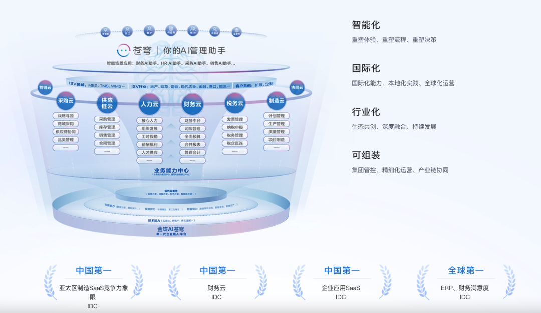 金蝶云·星空现已升级为金蝶AI星空,秉持流程驱动与角色驱动思想,通过数据和智能助力高成长型企业韧性成长,帮助企业从ERP资源计划力向 EBC数字战斗力转变,实现数字化转型以及管理重构 。