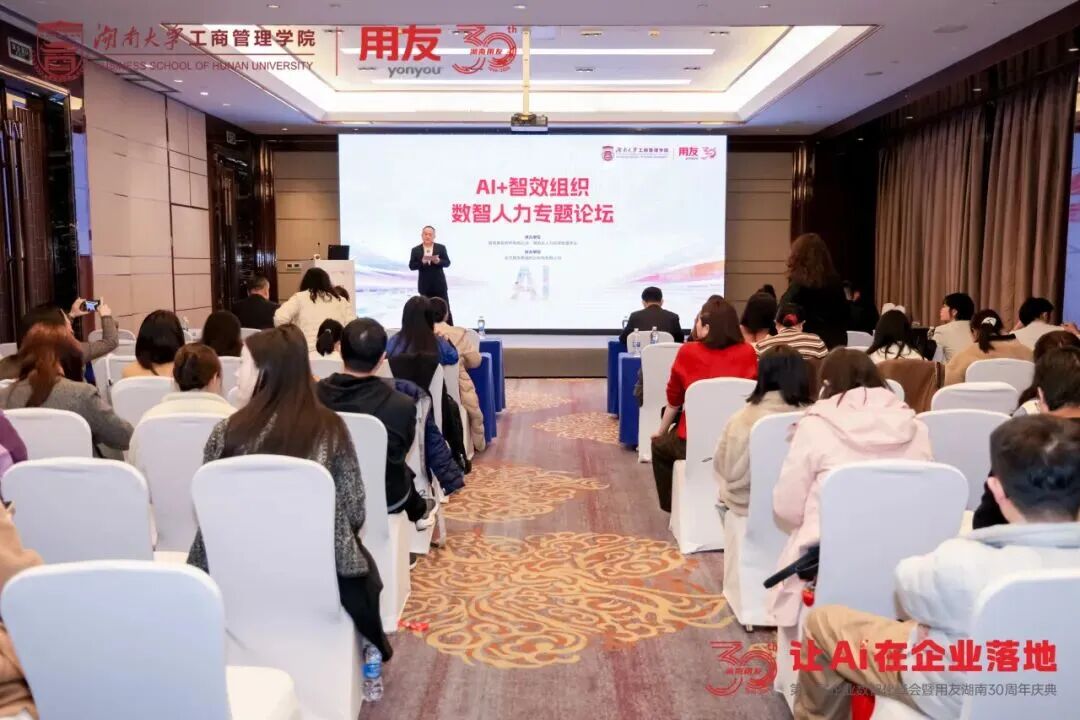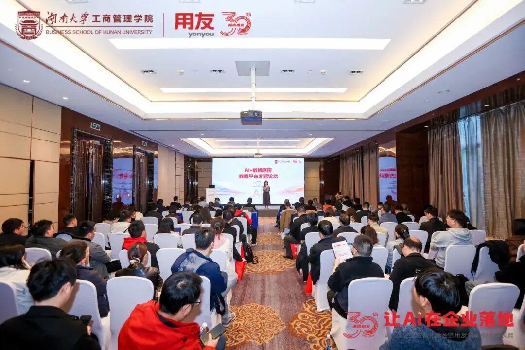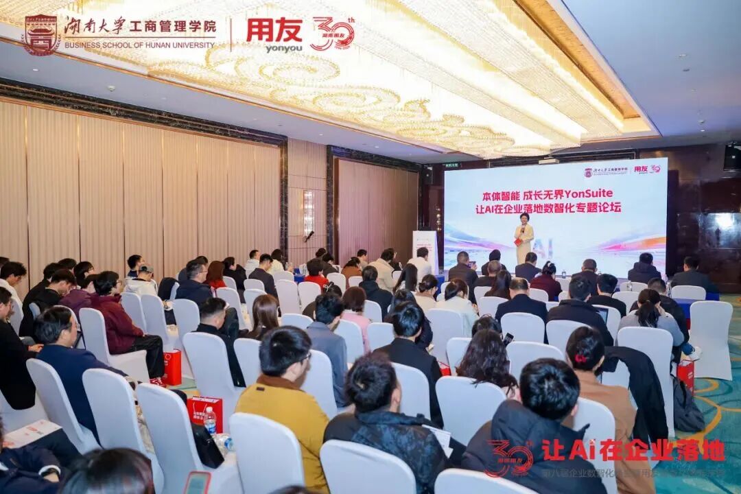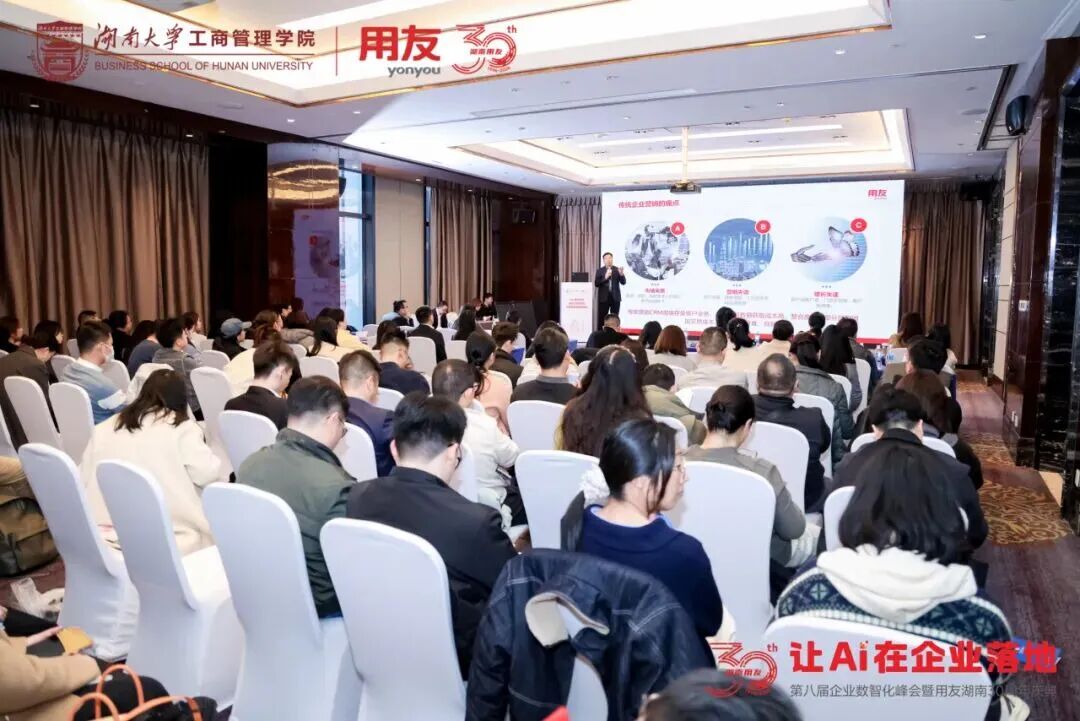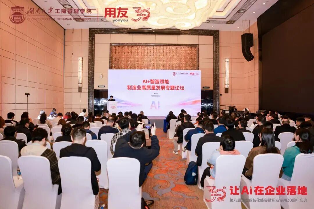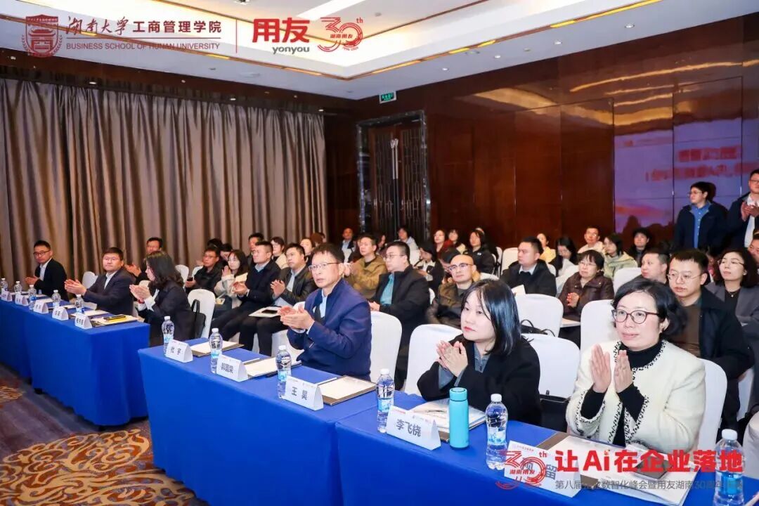 春满湘江,数智潮涌。3月26日,第八届企业数智化峰会在湖南长沙隆重召开。这场由湖南省工信厅、湖南省国资委指导,用友联合湖南大学工商管理学院共同主办,湖南大学工商管理学院EE中心、长沙市企业服务中心、中国农业银行股份有限公司长沙分行、新道科技股份有限公司、北京用友政务软件股份有限公司、畅捷通信息技术股份有限公司协办的活动已连续举办八年,汇聚“政产学研用”多方力量,成为湖南企业数智化转型的标志性交流平台。