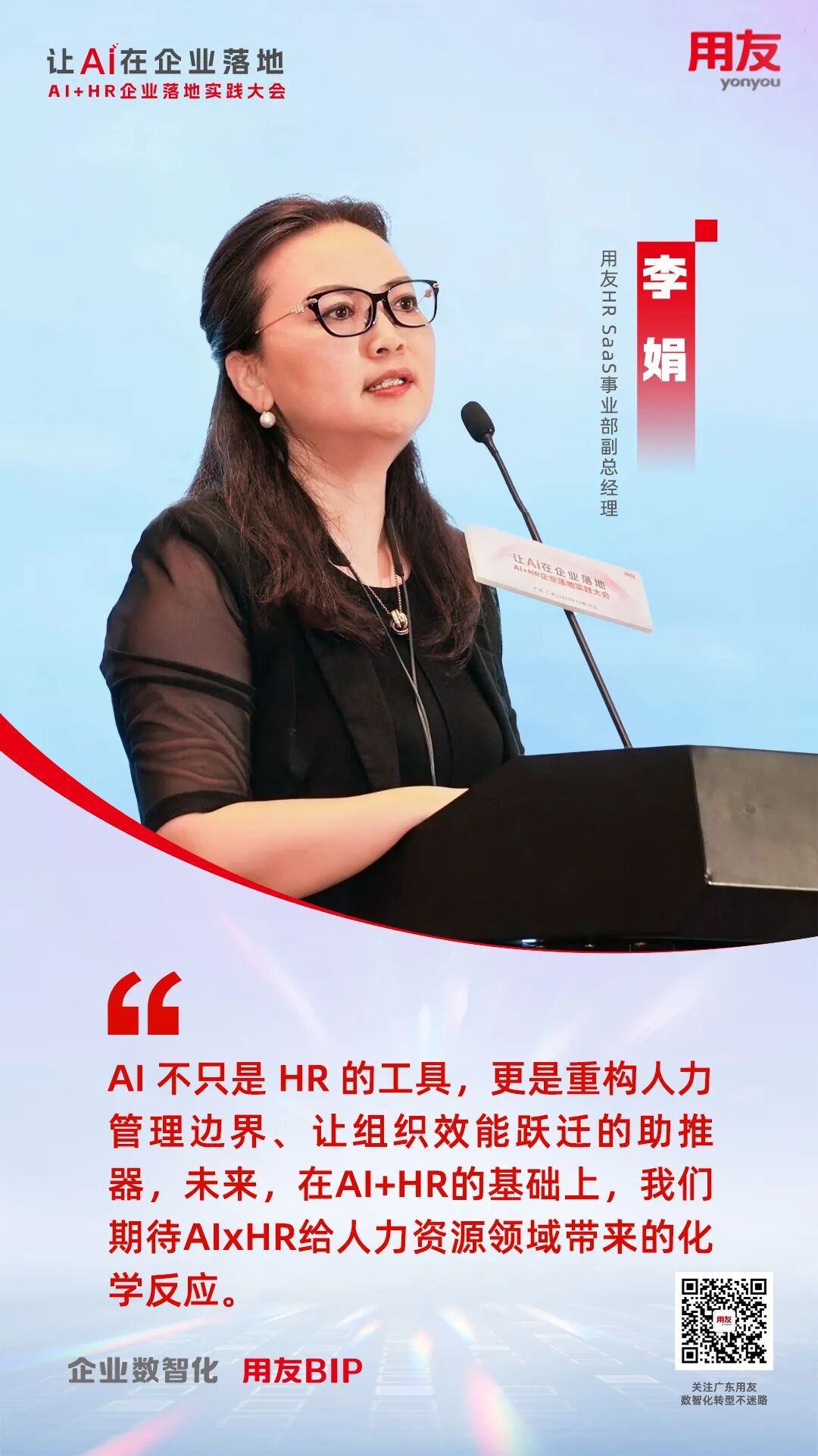 今日,以“让AI在企业落地AI+HR企业落地实践大会”为主题在广州圆满举办。不同于传统技术论坛,本次大会以 “落地实践” 为核心锚点,摒弃空泛的理论探讨,聚焦AI 在HR 全场景的实际用友网络科技——从头部企业的AI招聘系统搭建经验、用友HR SaaS的全场景赋能方案,到中小企业的轻量化HR AI工具落地路径,再到AI赋能员工培训与绩效评估的实战方法论,全方位为参会者提供可借鉴、可复制的解决方案,助力企业打破AI与HR融合的壁垒,让技术真正转化为HR领域的发展优势,为企业人力资源管理体系的优化升级与长远发展夯实基础。
